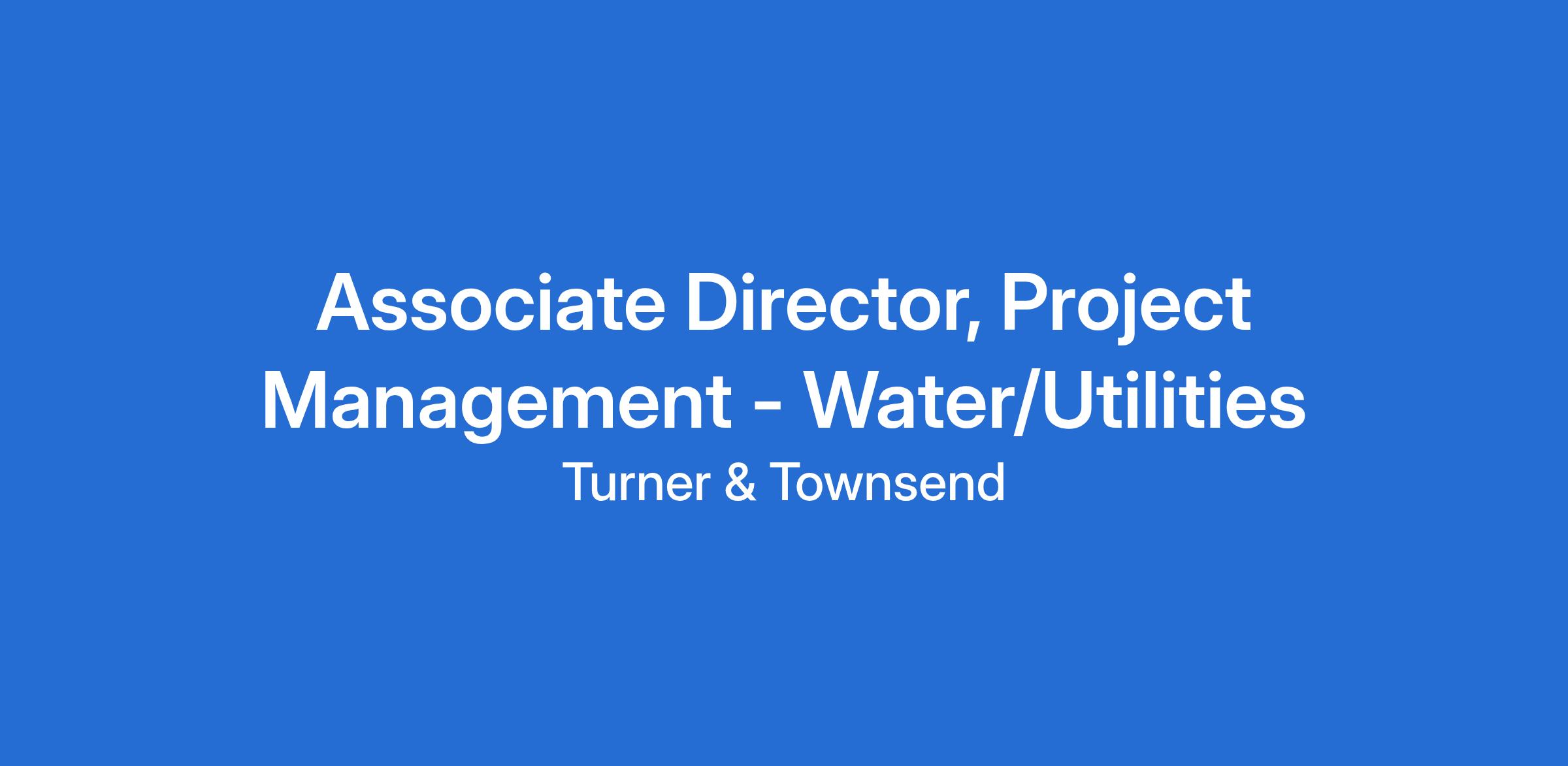 Associate Directors at Turner & Townsend work on business initiatives and a broad range of projects and programmes across the Utilities sector, including clean and waste water treatment facilities, mains installation and replacement, environmental improvement, asset management, developer services, Major Projects, Strategic Resource Options and many more. We are looking for individuals with the following skills, experience, and behavioural attributes: