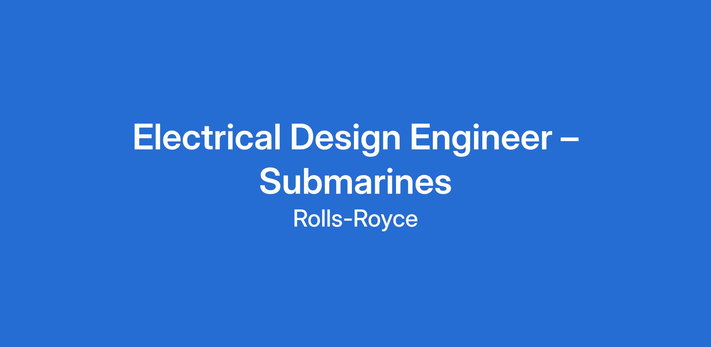 We have an exciting opportunity for an Electrical Design Engineer to join Rolls-Royce Submarines.