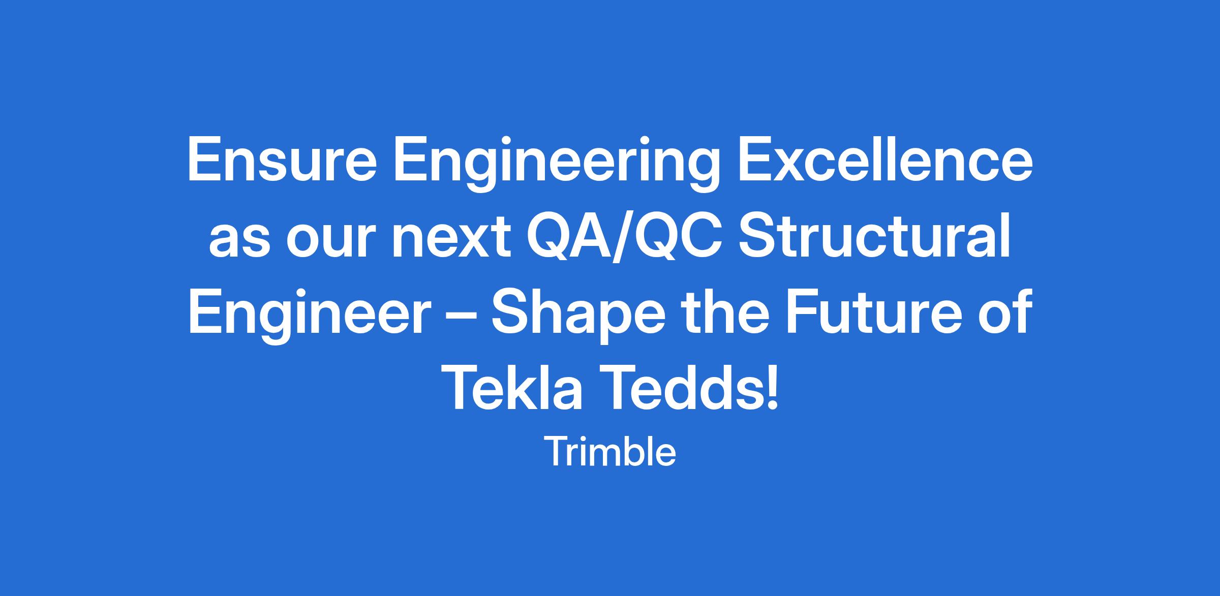 Trimble is looking for a meticulous problem-solver to join our Tekla Tedds team, where you will serve as the essential gatekeeper for engineering quality and play a critical role in releasing high-impact features that transform how the world builds.