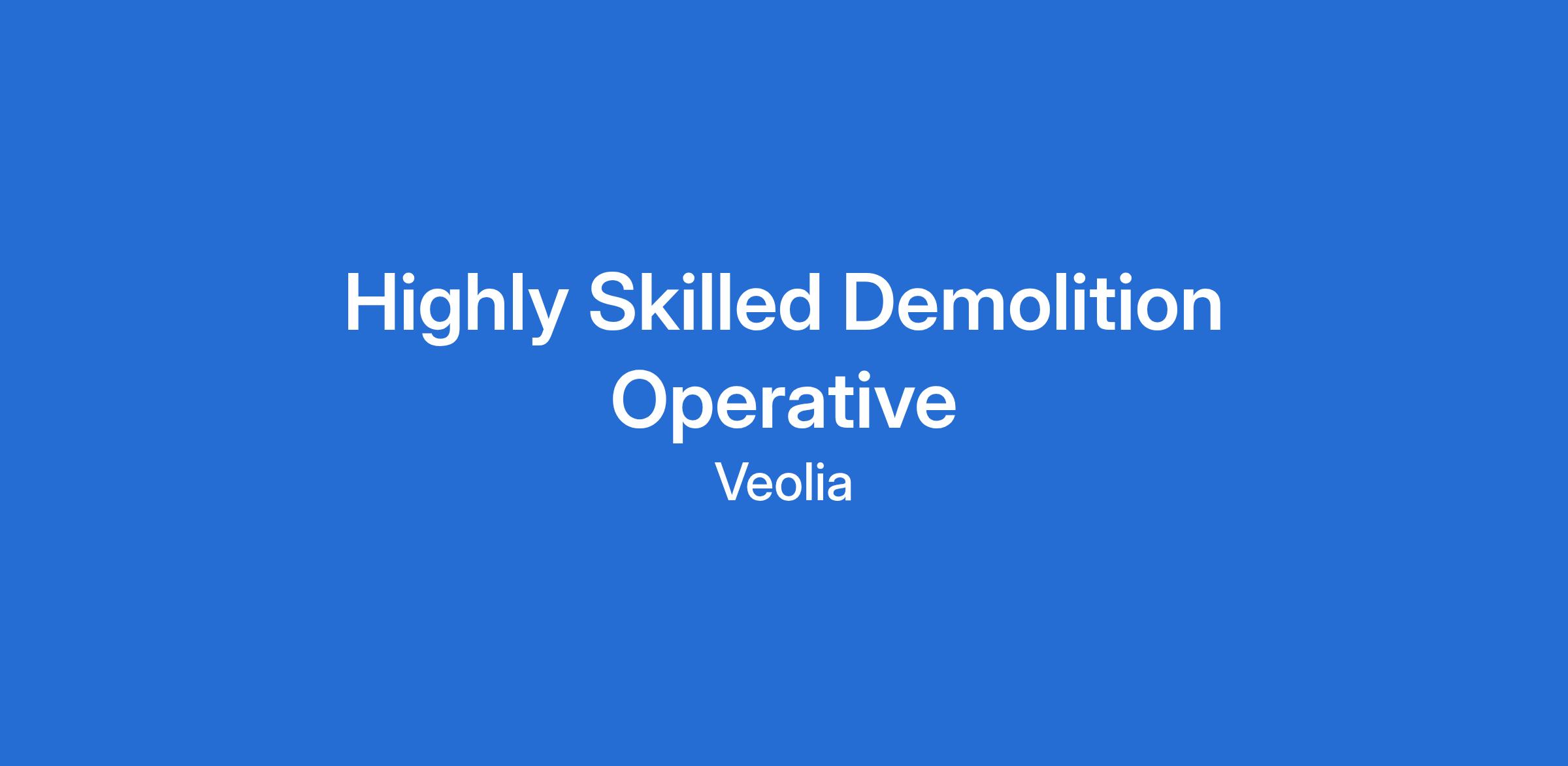 As a Highly Skilled Demolition Operative, you must hold a CSCS or CCDO card and have prior experience in demolition. You will also need a strong understanding of on-site health and safety, and the ability to work effectively with others.