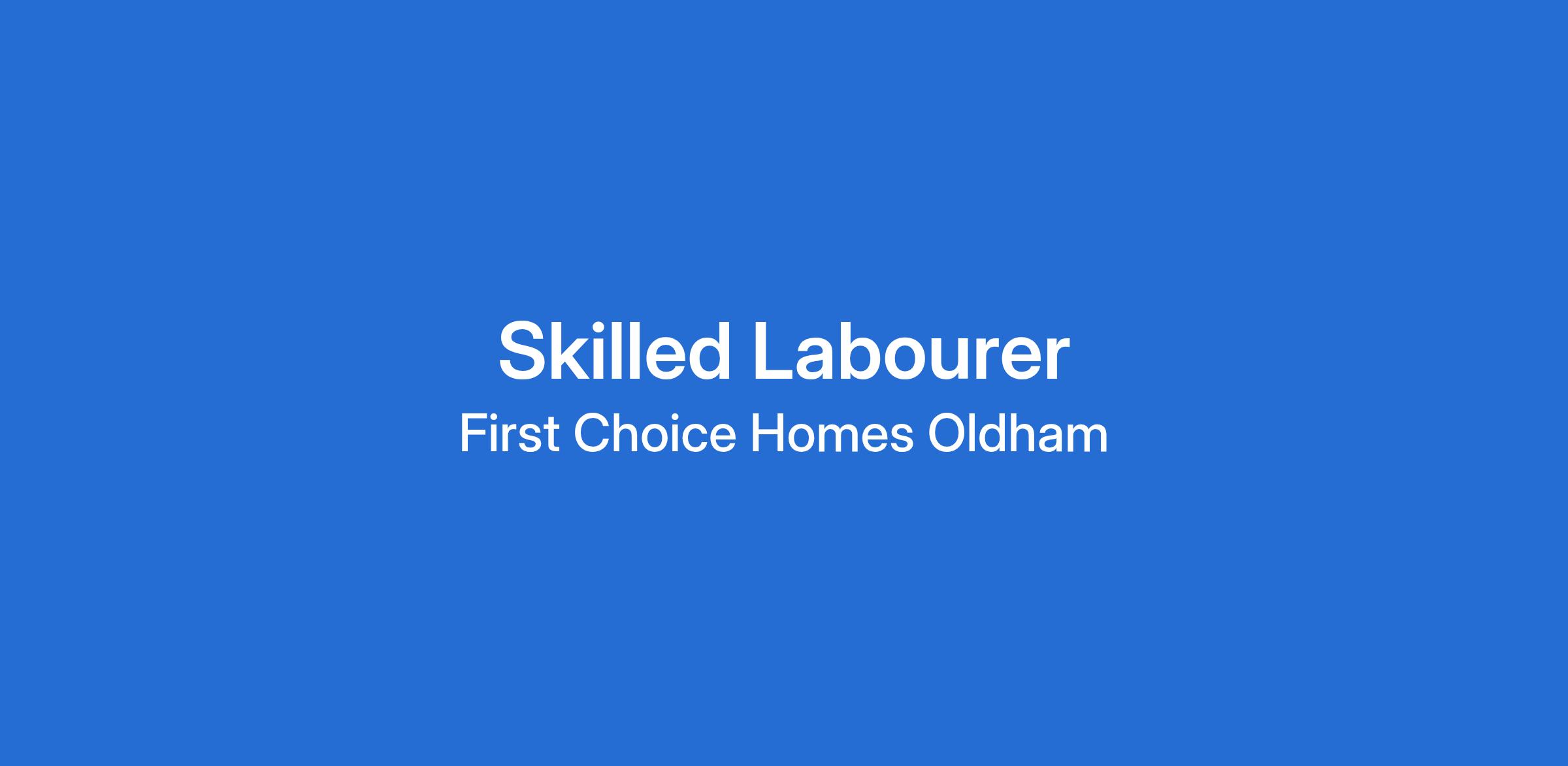 First Choice Homes Oldham (FCHO) has an exciting opportunity for a Skilled Labourer to join our teams and play a key role in maintaining safe, clean and well cared for homes for our residents.